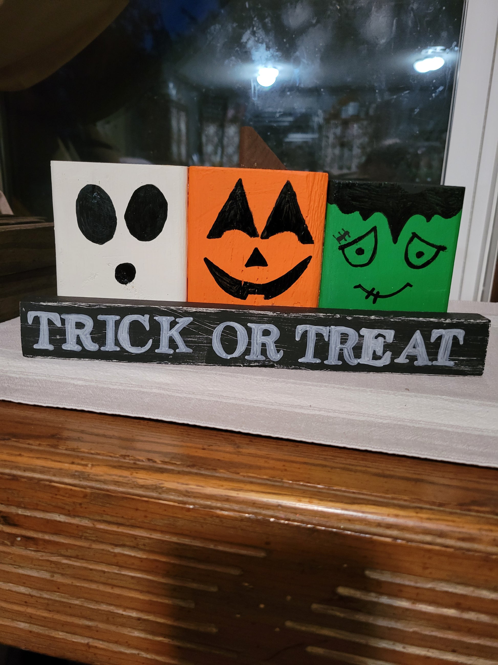 Handcrafted 2x4 Halloween sign out of 2x4 and 1x1 material, lightly distressed. Each piece is hand-coated twice with exterior paint to open up full creativity for indoor/outdoor decorating options. Made with love from our home to yours.